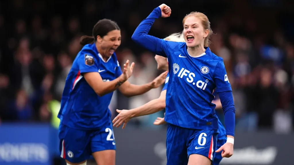Reigning champions Chelsea Women delivered a dramatic statement in the FA Women’s Super League, edging past Aston Villa Women in a pulsating 4–3 victory to reclaim second place in the table.